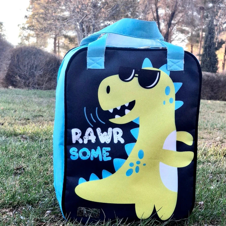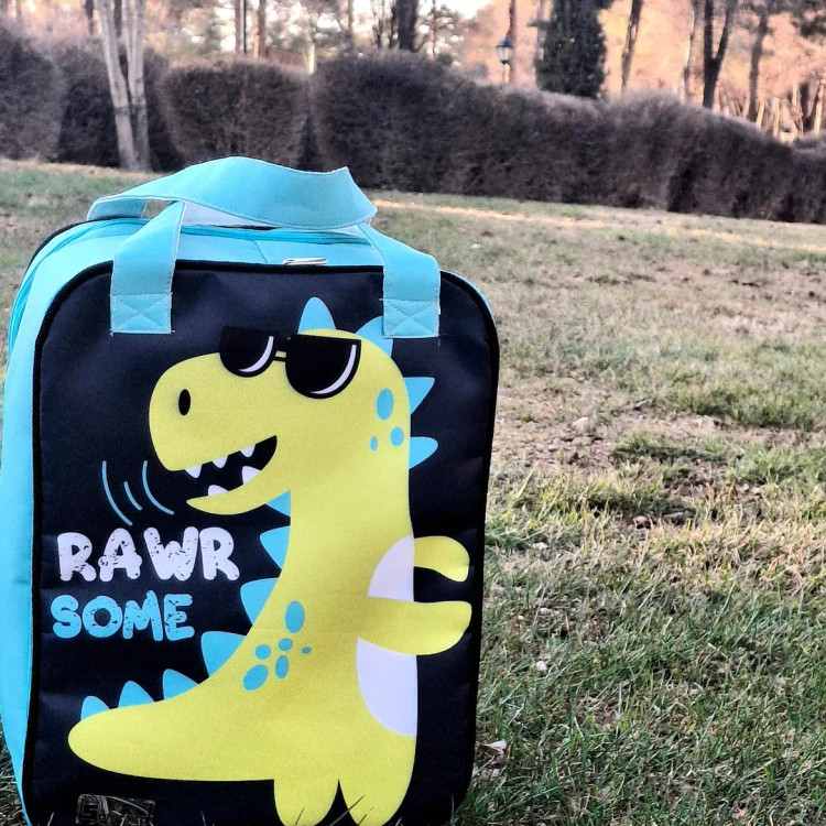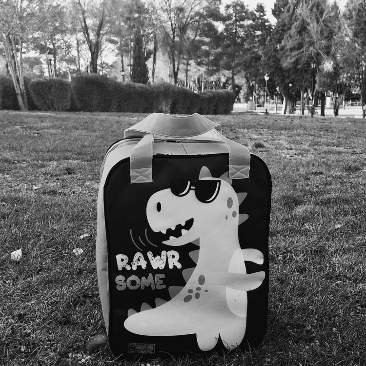 ساک مسافرتی بچگانه برزنتی با طراحی دایناسور و دو جیب بزرگ
