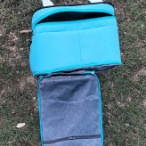 - کیف دوزیپ جادار دو زیپ مدل چمدونی ابعاد ۳۸در ۲۸ در عمق ۲۱ جنس برزنت پشت فوم آستر رویال ایرانی و داخل بند نگهدارنده داره و جیب دار هست، رنگ بدنه آبی فیروزه ای از چیزی که در عکس میبینید یک درجه روشن تر است، پنل جلو کیف طرح دایناسور و از جنس برزنت پشت فوم- زیپ و سر زیپ به کار رفته شماره 8 بسیار روون و با کیفیت