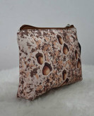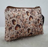 جنس مخمل مبلی، جنس آستر رویال خارجی، درون کیف مقسم دارد.رنگ زمینه کرم قهوه ای مناسب برای استفاده در کیف های بیرونی و یا برای استفاده در سفر و جلو میز توالت