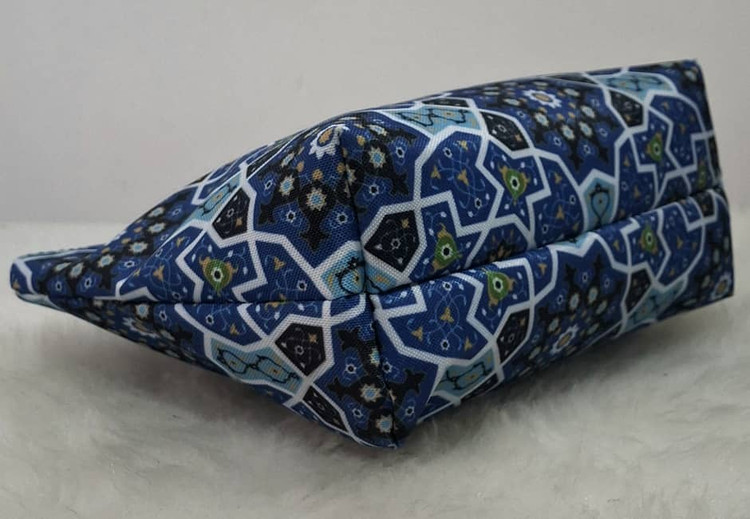 جنس بدنه برزنت پشت فوم،جنس آستر برزنت ضد آب وارداتی- درون کیف دارای مقسم و تنظیم کننده هست همانطور که در تصویر میبینیدجنس مقسم ها از تور ورزشی هست وکاملا پاک. دوزی شده و محکم هستند، زیپ و سرزیپ شماره 5 رنگ کیف تنالیته رنگ های آبی و آبی کاربنی است .و رنگ زیپ آبی کاربنی